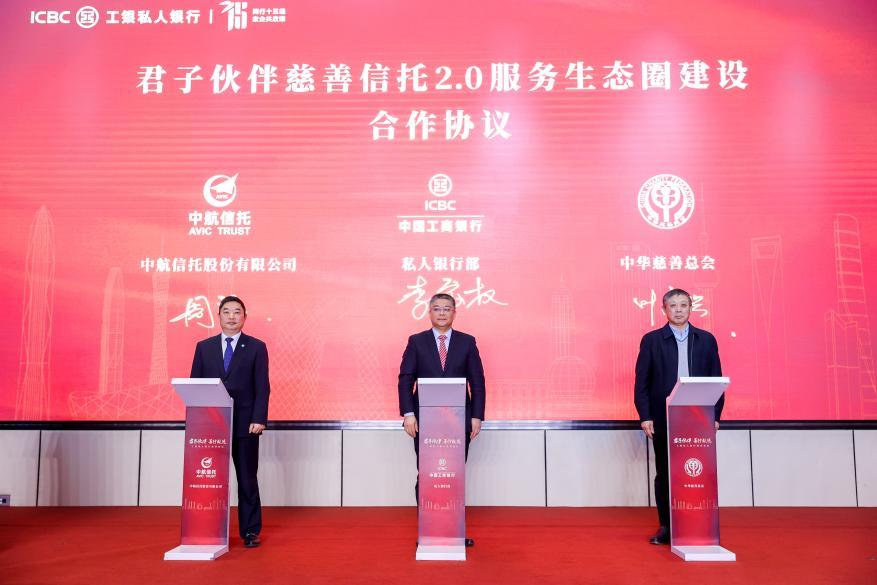 发布会上,周祺代表中航信托和中华慈善总会、工银私人银行签署了君子伙伴2.0版本的合作协议,三方建立深度合作,共同打造企业家积极参与公益慈善、助力共同富裕的专业化平台。