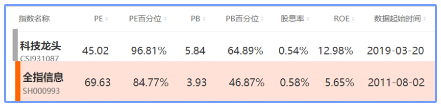 ,在回归黄色正常估值时才开启定投,全指信息指数估计市盈率在40倍-50倍左右比较合理,科技龙头PE在30倍左右。