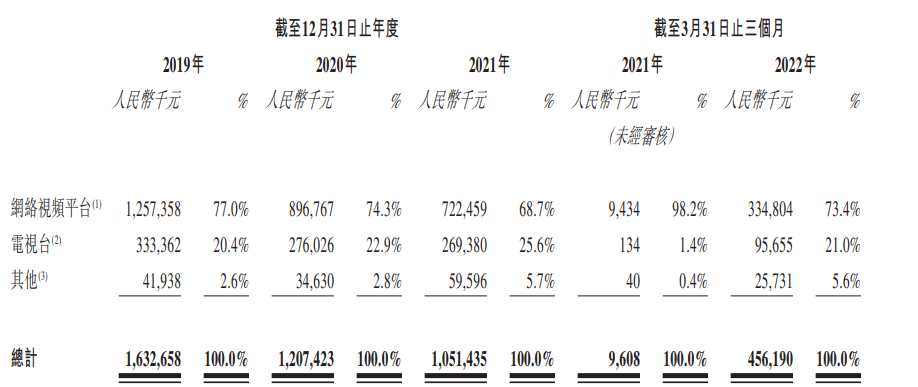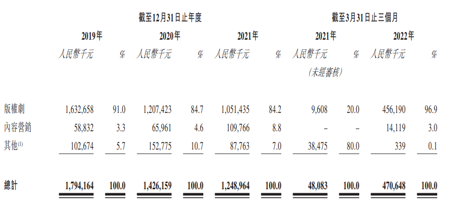 同时,2021年版权剧收入下降则是由于授权予客户的首播版权剧总数由2020年的127集减少至2021年的115集,而且于2021年播映的《陪你逐风飞翔》每集剧集的授权费相对较低,投资规模相对较小。