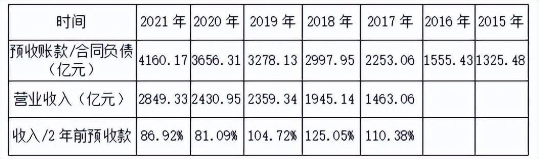 由于房地产预售房制度,房企当年收入往往是数年前卖出的房子取得预收账款(现在会计科目改为“合同负债”)结转而来的。具体时间与企业的交付周期有关,根据下表推算,保利发展当年收入与2年前的预收账款存在较好的吻合关系,合理预计,保利发展的交付周期通常是2年左右。