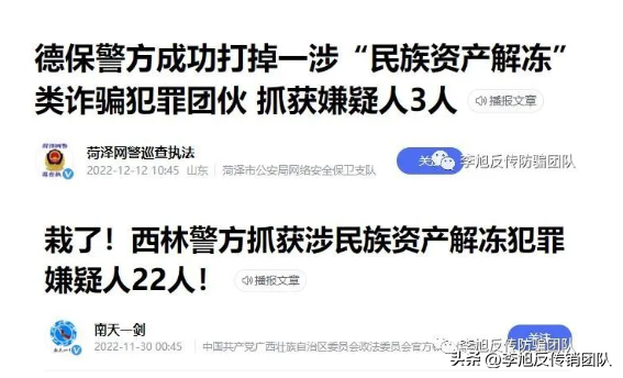 全国各地公安部门更是对“民族资产解冻类”诈骗发起总攻