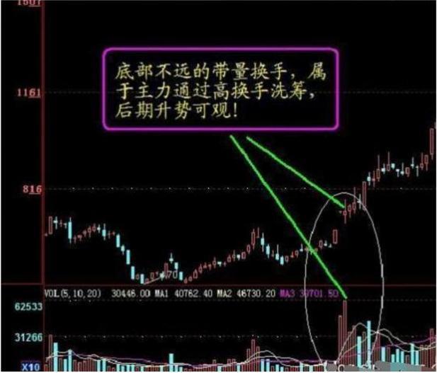 长期低换手的底部股票,突然某日高换手放量上涨,则表示该股新资金进入的可能性较大,此时可在放量后缩量回调的阴线时逢低买入。