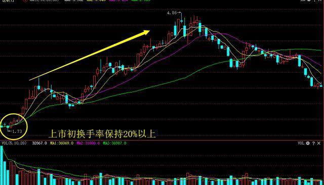 5、新股上市之初换手率高是很自然的事儿,一度也曾上演过新股不败的神话,然而,随着市场的变化,新股上市后高开低走成为现实。显然已得不出换手率高一定能上涨的结论,但是换手率高也是支持股价上涨的一个重要因素。