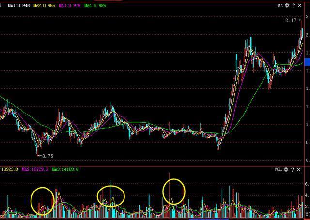 3、相对高位成交量突然放大,主力派发的意愿是很明显的,然而,在高位放出量来也不是容易的事儿,一般伴随有一些利好出台时,才会放出成交量,主力才能顺利完成派发,这种例子是很多的。
