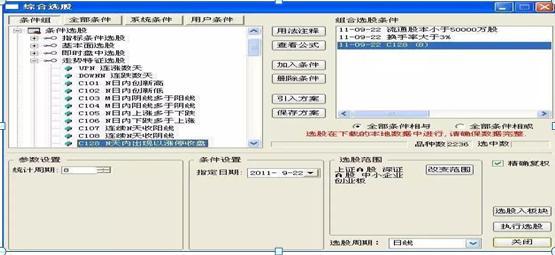 N的设定你可以选8,10,13,根据自己喜欢,这是最关键的一个条件,选好设定好点加入条件,右框出现3个条件。选股周期为日线级别。