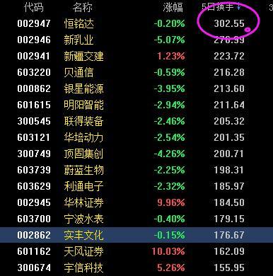 低换手率:我们可以把凡是换手低于3%以下的称为低换手率。(这类型的个股观望为宜)