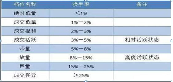 我们常使用3%以下这个标准,并将小于3%的成交额称为“无量”,这个标准得到广泛认同,更为严格的标准是2%。
