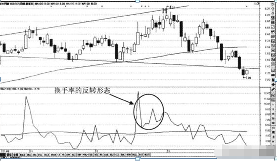 换手率指标出现反转形态后,价格很难表现强势。特别在主力没有控盘的情况下,一旦换手率指标出现萎缩,股价走势就会非常差。那么我们可以根据换手率的反转发现高抛的做空机会,降低价格回调期间的持股风险。