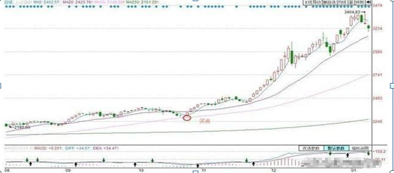 。也就是前面提到的买二,底背离出现后或者价格突破前期低点开始上涨,5日均线、20日均线