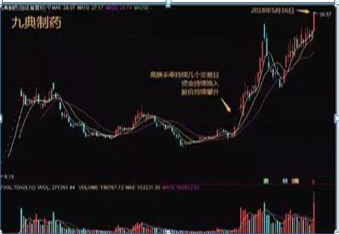2、高换手率表明多空双方的分歧较大,但只要成交活跃的状况能够维持,一般股价都会呈现出上扬走的势。