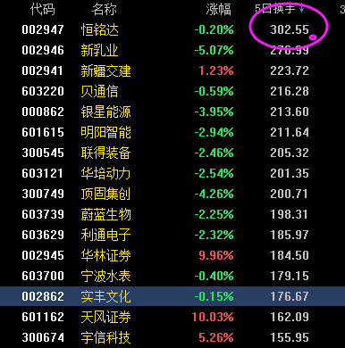 低换手率:我们可以把凡是换手低于3%以下的称为低换手率。(这类型的个股观望为宜)
