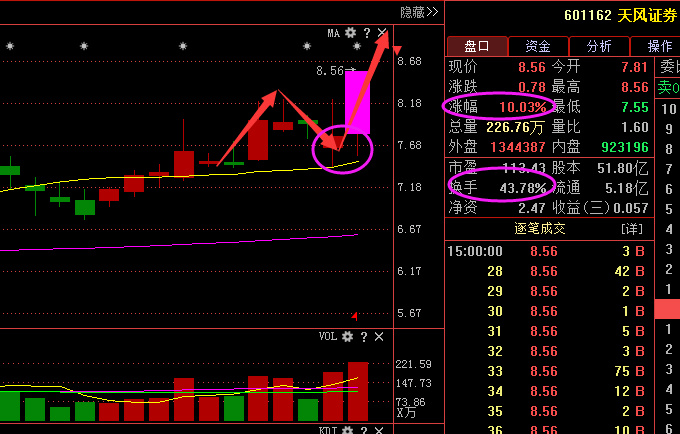 比如天风证券,在周四选出,周五涨停,换手率也是超过了43%以上。这样的个股是不是庄家在出货呢?