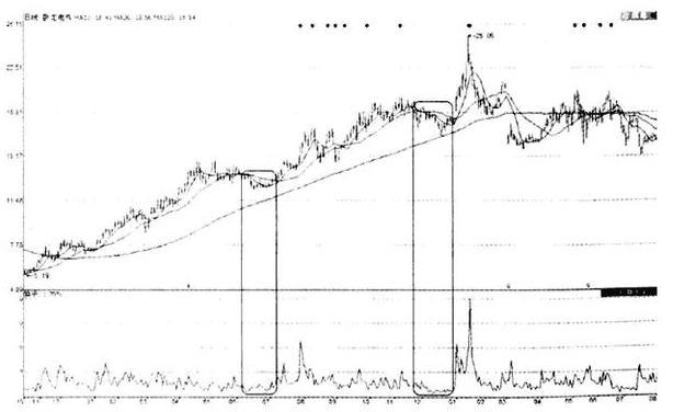 (3)判断股价走势。将换手率与股价走势相结合,可以对未来的股价做出一定的预测和判断。某只股票的换手率突然上升,成交量放大,可能意味着投资者在大量买进,股价可能会随时上扬。如果某只股票持续上涨了一个时期后,换手率又迅速上升,则可能意味着一些获利盘的回吐需求,股价可能会下跌。