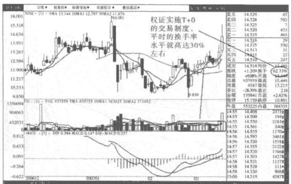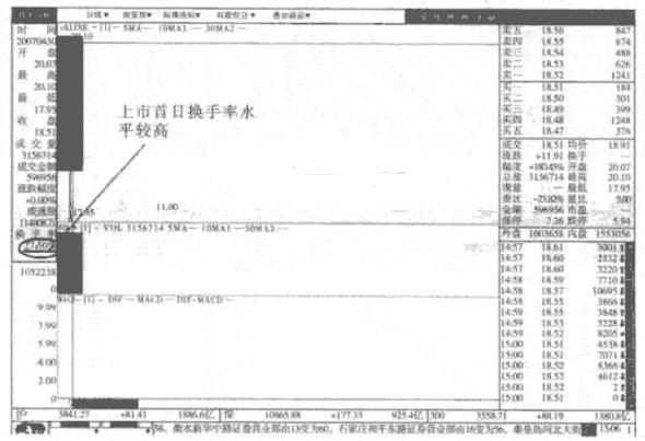 除非差别特别大的时候才能看得出来。比如在股改完成后的第一天交易不设涨跌幅度的限制,该天的换手率都很高,以及新股(如图下所示)上市的第一天也是一样不设涨跌幅度的限制。