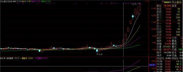 中换手率:我们可以把换手达到4%以上的称为中换手率。(中换手的标准是换手基本在4%左右,这类型的个股可以关注)