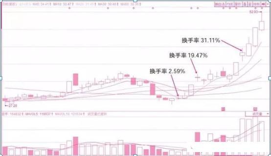 股价一旦起动,拉高更离不开换手率的支持,换手越是积极、越是彻底,股价升得越是轻快。因为获利盘不断在换手的过程中被清洗,平均成本不断地提高,上行所遇的抛压也大为减轻。