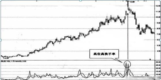 个股在相对高位突然出现高换手率而成交量突然放大,一般成为下跌前兆的可能性较大。这种情况多伴随有个股或大盘的利好出台,此时,已经获利的筹码会借机出局,顺利完成派发,“利好出尽是利空”的情况就是在这种情形下出现的。对于高位高换手率,投资者应谨慎对待。