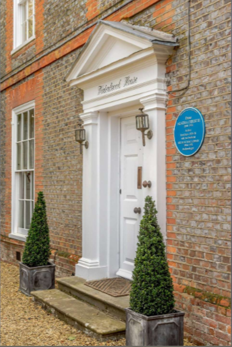这块圆形的蓝牌匾上写着:“作家阿加莎·克里斯蒂女爵士(1890-1976)曾与其丈夫、考古学家马克斯·马洛温爵士(1904-1978)于1934-1976年间居住于此。”