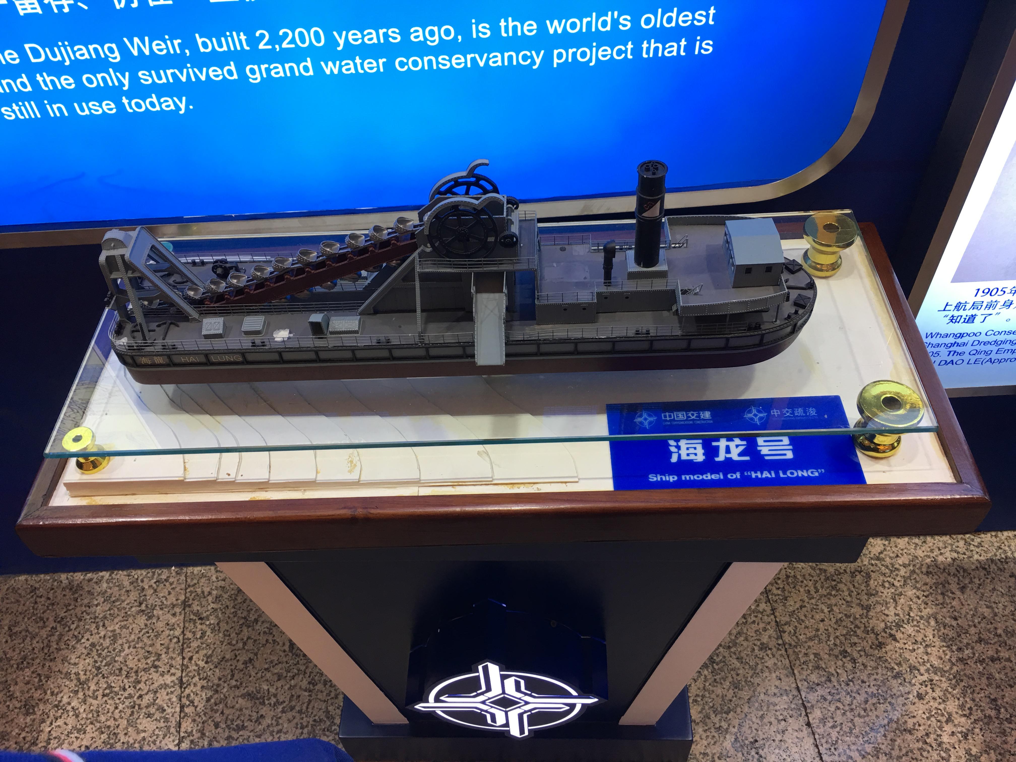 在此次主题成就展中,中交集团展示了自1987年至2019年的疏浚历史,并对外展示出了中国百年疏浚史上的“国之重器”模型,从最初的“北京”号、“海龙”号,到2019年亚洲最大、中国首艘拥有完全自主知识产权的重型自航绞吸挖泥船“天鲲”号,以及中交集团研发的中国首台超大直径泥水气压平衡复合式掘进机缩小比例模型。中交集团在成就展中还对外展示出近年来其在国内外完成的一系列工程,包括长江口航道整治工程、天津港疏浚工程、连云港30万吨级巷道疏浚工程以及2018年的港珠澳大桥。此外,斯里兰卡科伦坡港口城工程、乌克兰南方港粮食码头疏浚工程以及俄罗斯圣彼得堡布朗克港疏浚工程等国外大型疏浚项目也赫然在列。