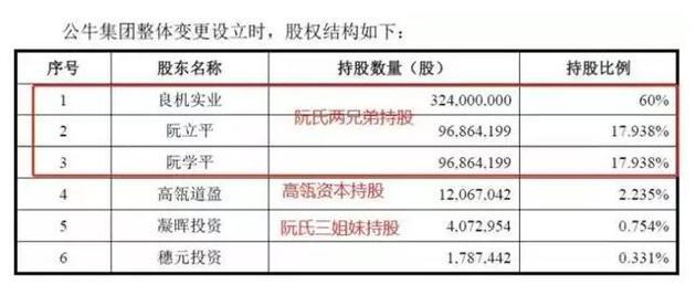 目前,公牛集团总股本为5.4亿股,最新股东名单中,第一大股东为良机实业,持股60%,阮立平和阮学平各持有良机实业50%的股份;作为自然人,阮立平与其弟弟阮学平各持有公牛集团股份17.938%;两人直接或间接控股公牛集团股份逾95.876%。