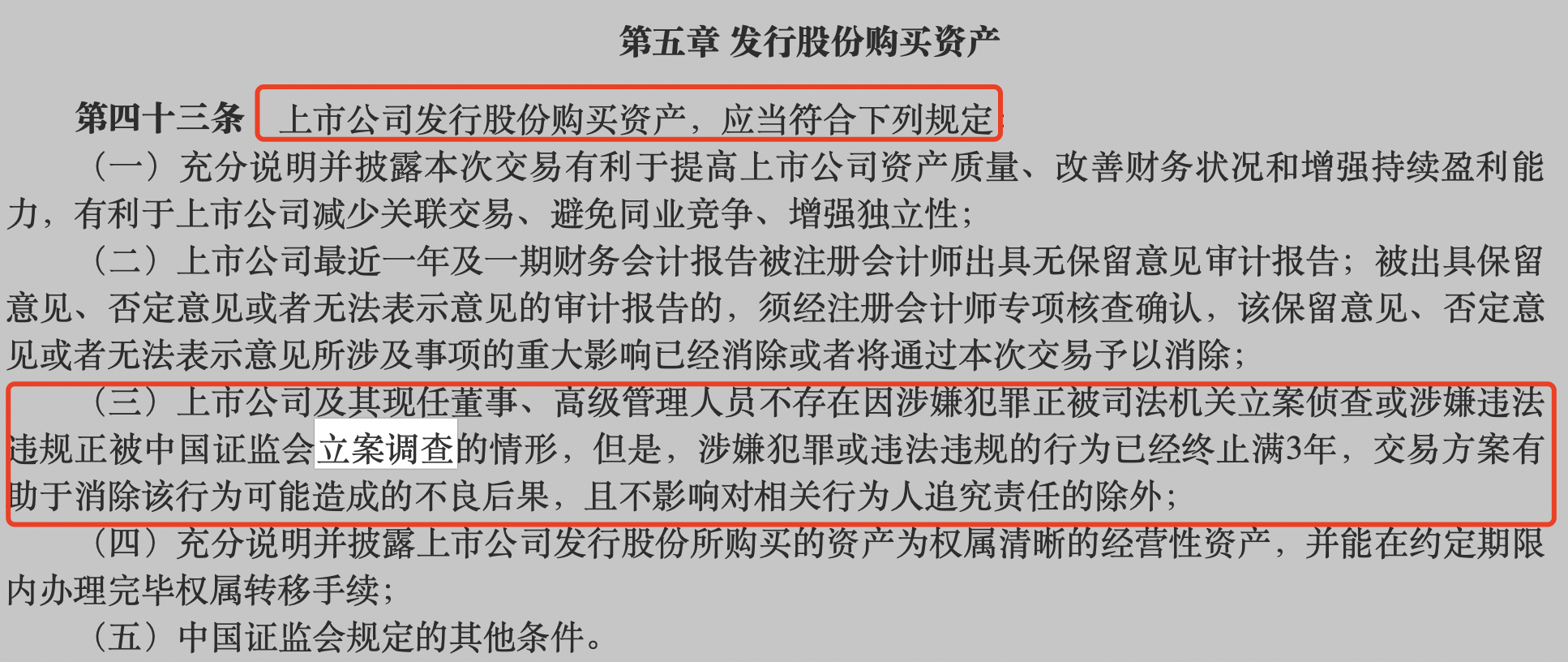 同样的,上市公司因违法违规被证监会立案调查的也不能发行股份购买资产。