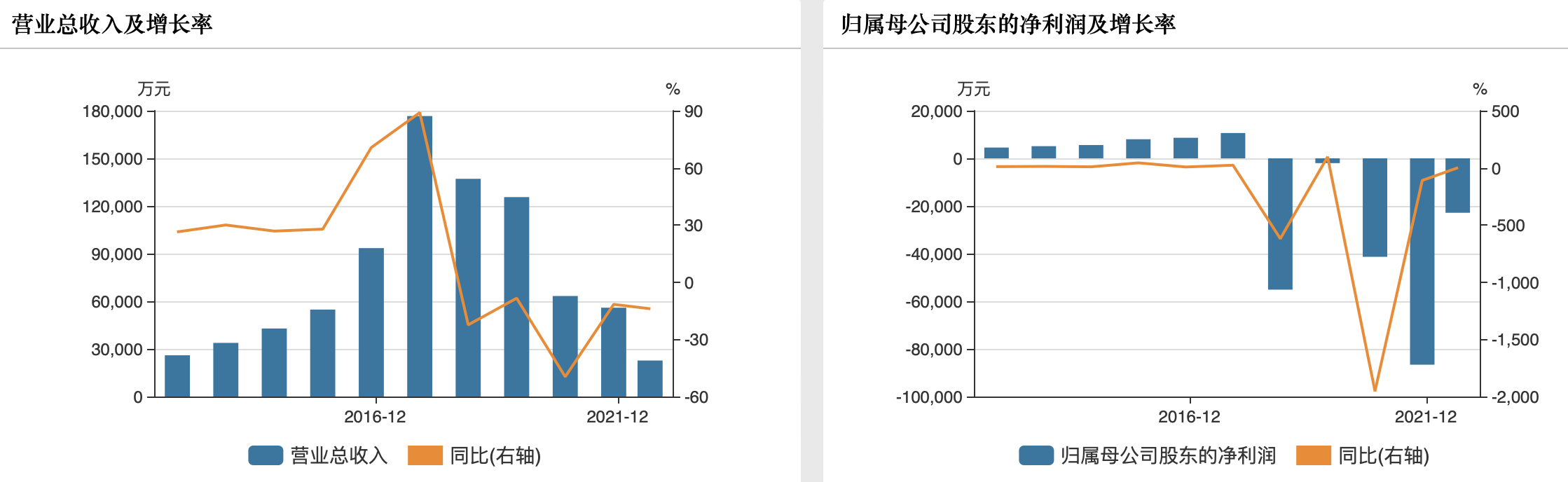 2019年,公司未及时披露子公司宁波东望失去控制,所以一开始披露的2019年业绩是扭亏为盈。但2021年4月23日,*ST安控披露《关于前期会计差错更正的公告》,更正后2019年实际也是亏损。这意味着,自2018年开始,安控科技收入就连年下滑,且持续亏损。2019年-2021年,公司分别亏损2014.15万元、4.13亿元、8.66亿元。
