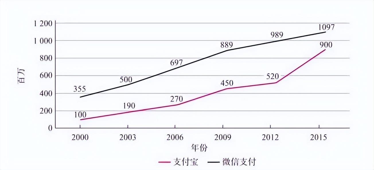 支付宝和微信支付两个平台上的用户数量和用户增长率都非常可观。这两个支付平台已是中国最大的支付系统,也是世界上最大的支付系统。