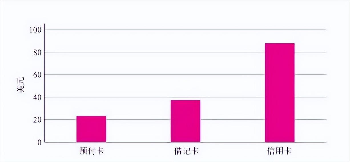 收入和支付形式之间的强相关性在此得到验证。预付卡每笔交易的平均价值是26美元,而借记卡是38美元,信用卡是89美元。