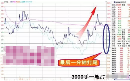 尾盘最后几秒拉升,形成一个假阳线,看图