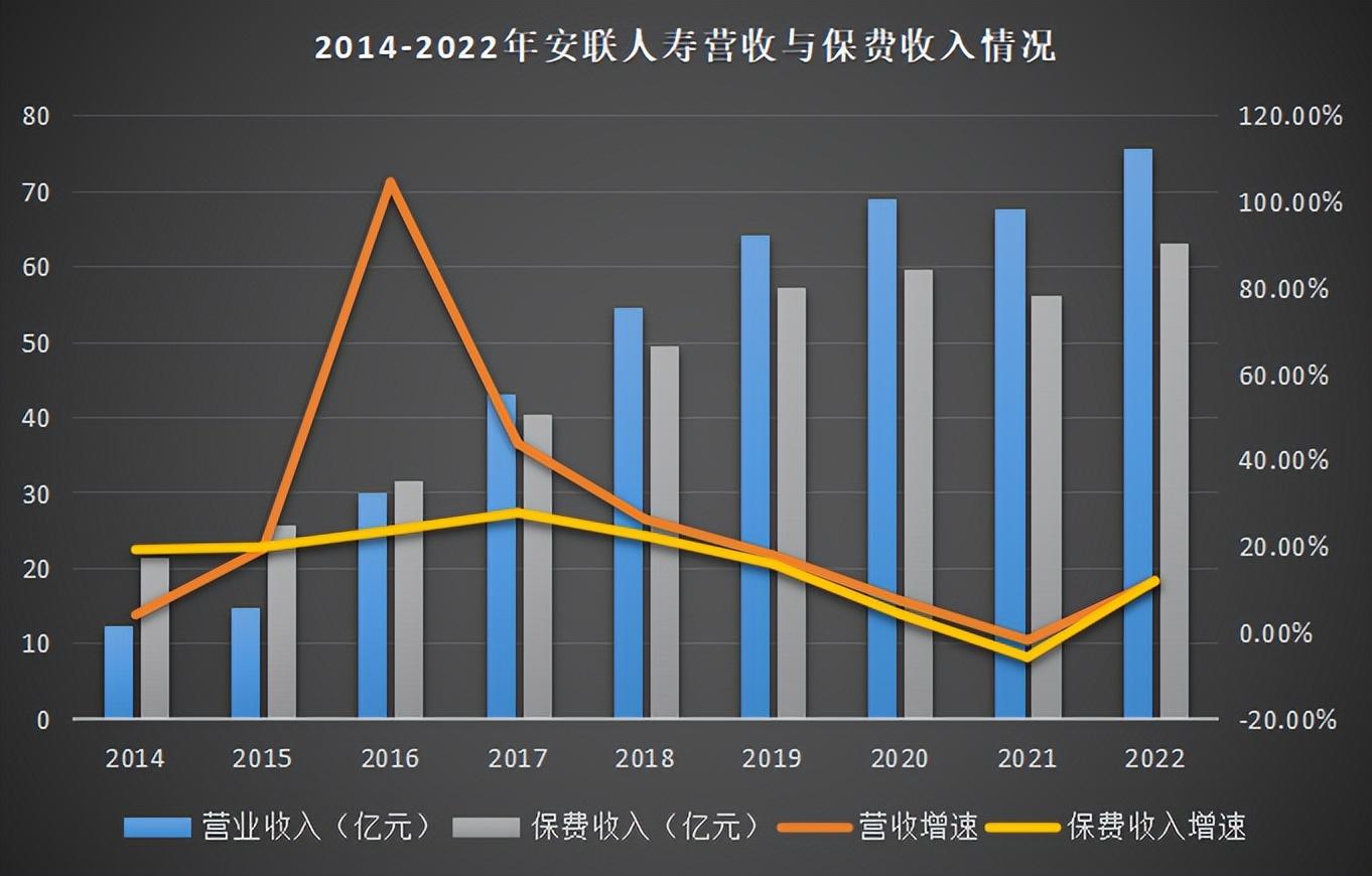 值得注意的是,2022年安联人寿的营收与保费收入增速扭转了连续下行走势。其中,公司营收同比增长11.76%,保费收入同比增长11.98%,但规模仍处于百亿元以下。