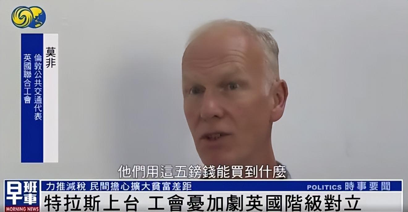 特拉斯表示,上台后会大刀阔斧减税,当地社会对此有不同意见,曾组织多场罢工的工会代表担心,减税或将扩大贫富差距、激化社会矛盾。