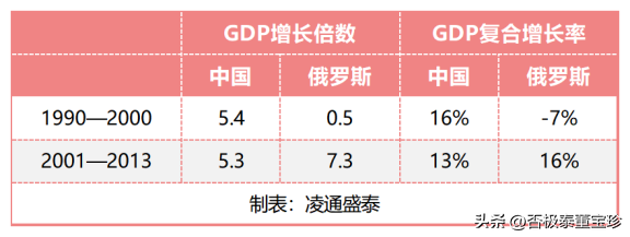 30年的实证数据和结果证明中国的政府加市场模式在客观效果上更高效,更能促进经济发展。在极端迷信市场万能的休克疗法失败后,叶利钦公开宣布放弃休克疗法,并称抄袭西方经济体制的做法是错误的。此后,2000年普京政府刚一上台就对市场化过程中形成的俄罗斯寡头经济进行清理,将寡头控制的关系国计民生的基础战略资源收归国有,由政府经营,2000年后的俄罗斯经济好转,社会稳定,俄罗斯适度回归“政府+市场”稳住了经济。俄罗斯乱于急速转型为“一条腿走路”的单一市场模式,治于适度回归政府加市场化,俄罗斯在转型过程中前后两个阶段的不同状况,证明“政府+市场”两条腿走路模式规律性超越了一条腿走路模式。下表是1990-2000年及2001-2013年中俄GDP总额及增速对比: