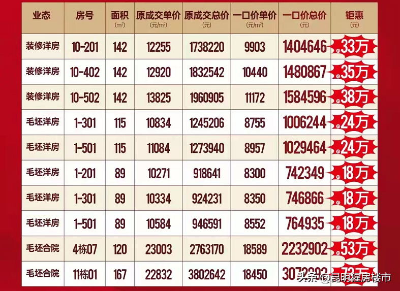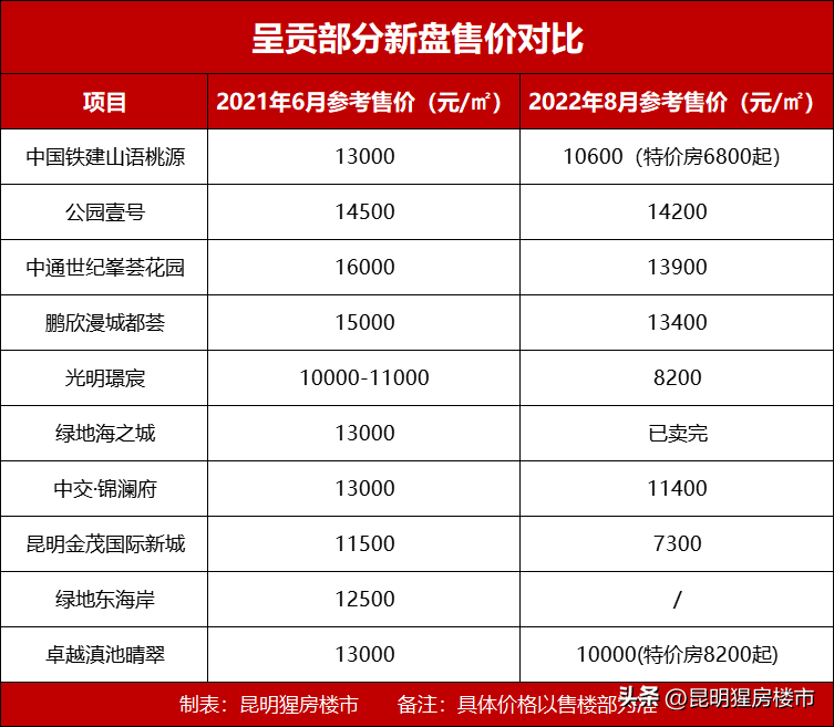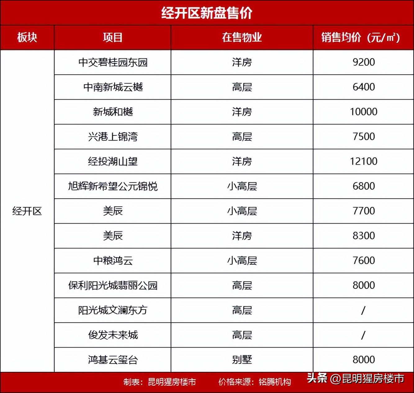 山语桃源特惠洋房约6800-7500元/㎡起;卓越滇池晴翠特价房源8200元/㎡起,金茂国际新城7月住宅成交备案均价仅约7300元/㎡。