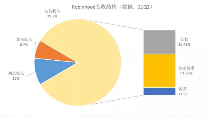 图3:Robinhood营收结构(数据:21Q2)来源:公司财报,36kr制图