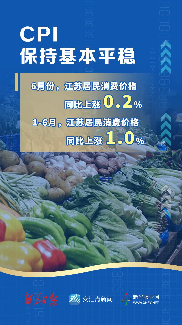 交汇点讯 7月10日,国家统计局江苏调查总队公布了我省6月份居民消费价格变动情况。数据显示,6月份,江苏居民消费价格同比上涨0.2%。其中,城市、农村均上涨0.2%;食品价格上涨3.3%,非食品价格下降0.5...