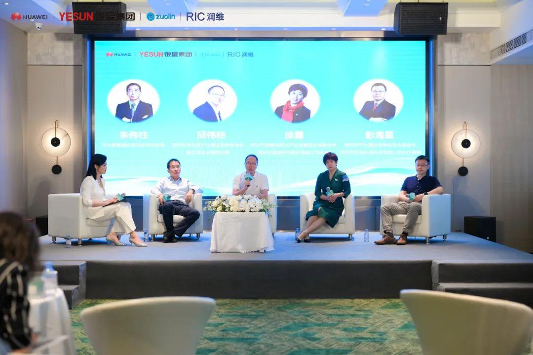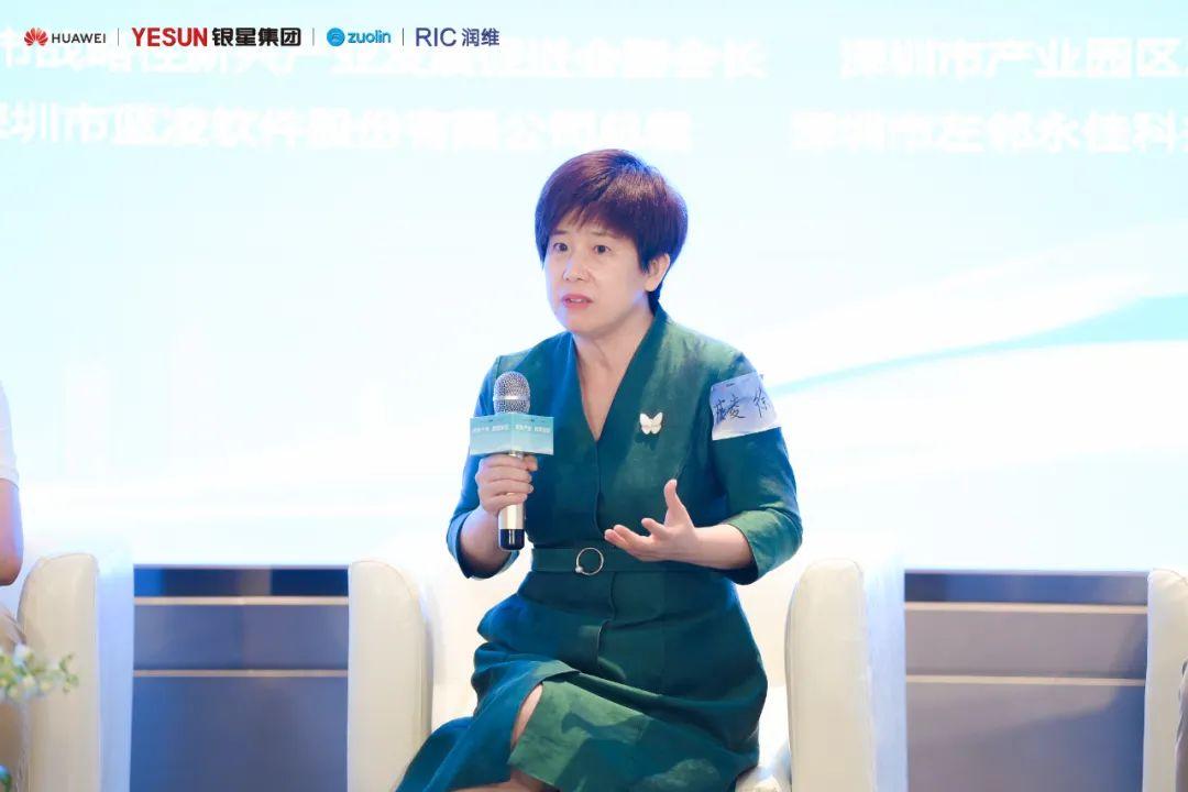 主题分享结束后,随即举行了圆桌讨论,华为智慧园区规划咨询总经理朱伟柱,港之龙实业集团总裁、深圳市龙华区产业园区促进会会长邱伟标,深圳市蓝凌软件股份有限公司总裁、深圳市战略性新兴产业发展促进会副会长徐霞,深圳左邻永佳执行董事彭海星就园区和企业如何进行数字化转型、数字化如何赋能园区和企业发展以及数字化如何实现产业、企业、园区之间的联动等问题进行了深入探讨,现场气氛热烈。