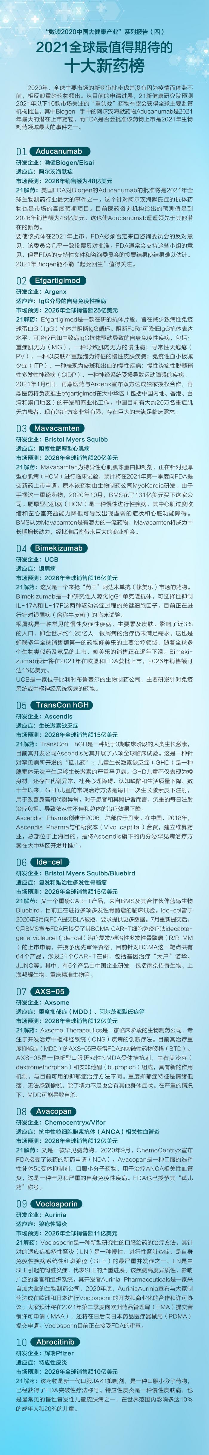 大健康行业,政策与技术是主要驱动力,新药是技术创新的主要结晶。而新药审批又事关企业投资与研发方向。没有新药获批上市,就没有商业化,企业也就没有生存之本。为了深刻把握中外新药发展脉络与动向,21新健康研究院特推出了“2020中国最值得关注的十大获批新药榜”、“2021全球最值得期待的十大新药榜”。