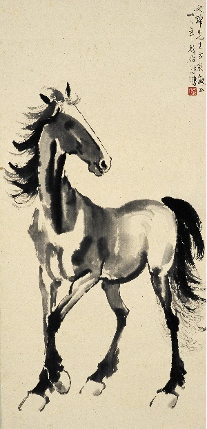 徐悲鸿 立马 109×53.3cm 纸本水墨 1947年 中央美术学院美术馆藏