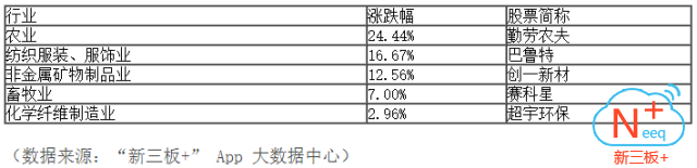 9、行业涨幅排行榜中,农业以涨幅24.44%荣登行业榜首,其他表现强劲的行业还有纺织服装、服饰业、非金属矿物制品业、畜牧业和化学纤维制造业等。
