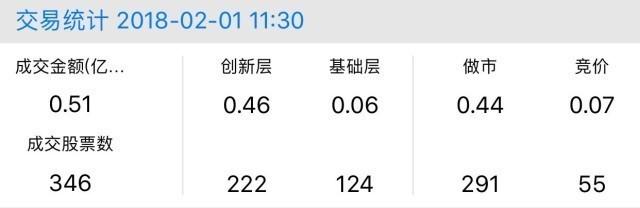 【新三板+】2月1日讯,据“新三板+” App大数据中心显示,午盘市场总成交5148.42万,1333家创新层企业中,222家公司成交4574.39万, 124家基础层公司成交574.03万。55家集合竞价转让公司成交708.42万,291家做市转让公司成交4440.00万。
