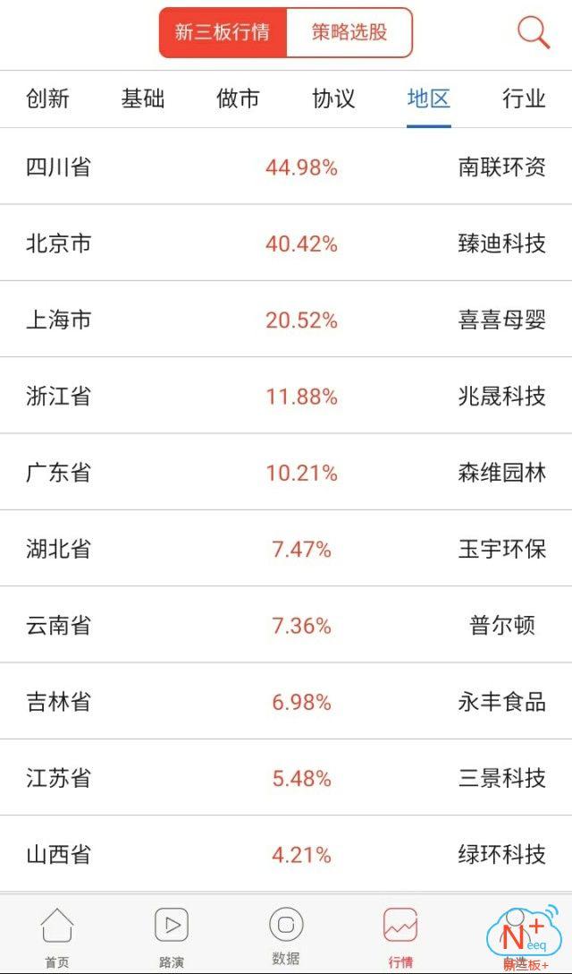 4、全天共有21个地区板块上涨,四川省以44.98%领涨地区排行榜,其后依次是北京市、上海市和浙江省。