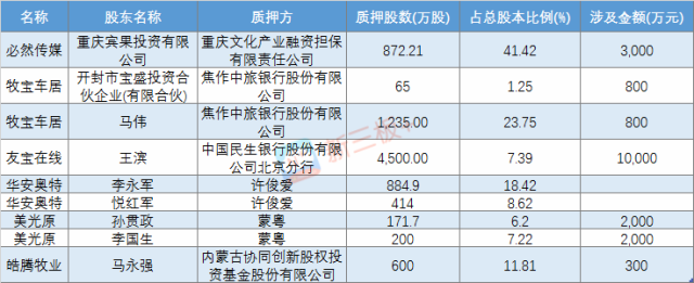 据“新三板+”App AiLab显示,昨日共有6家公司发布股权质押公告,共质押8942.81万股,涉及金额1.89亿元。涉及公司分别是:必然传媒、牧宝车居、友宝在线、华安奥特、美光原和皓腾牧业。