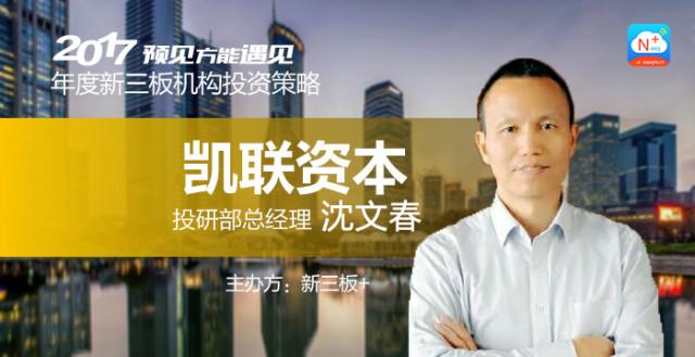“新三板+”2017年度机构投资策略展望——凯联资本沈文春: