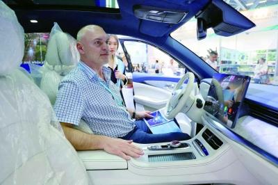 广交会上,国外客商试乘开沃新能源车。 受访企业 供图