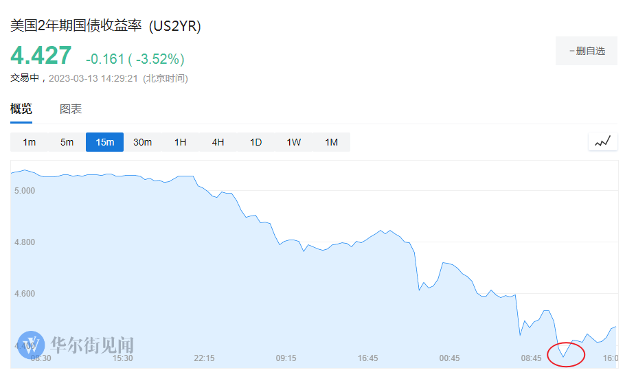 硅谷银行暴雷导致市场减少对美联储加息的押注,周一美国两年期债券收益率一度大跌24个基点至4.39%,这使得美国2/10年期国债收益率曲线倒挂幅度扩大16个基点。