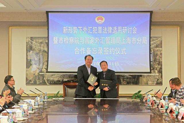 2017年1月11日下午,上海市人民检察院与国家外汇管理局上海市分局共同召开“新形势下外汇犯罪法律适用问题”研讨会暨市检察院、国家外汇管理局上海市分局合作备忘录签约仪式。