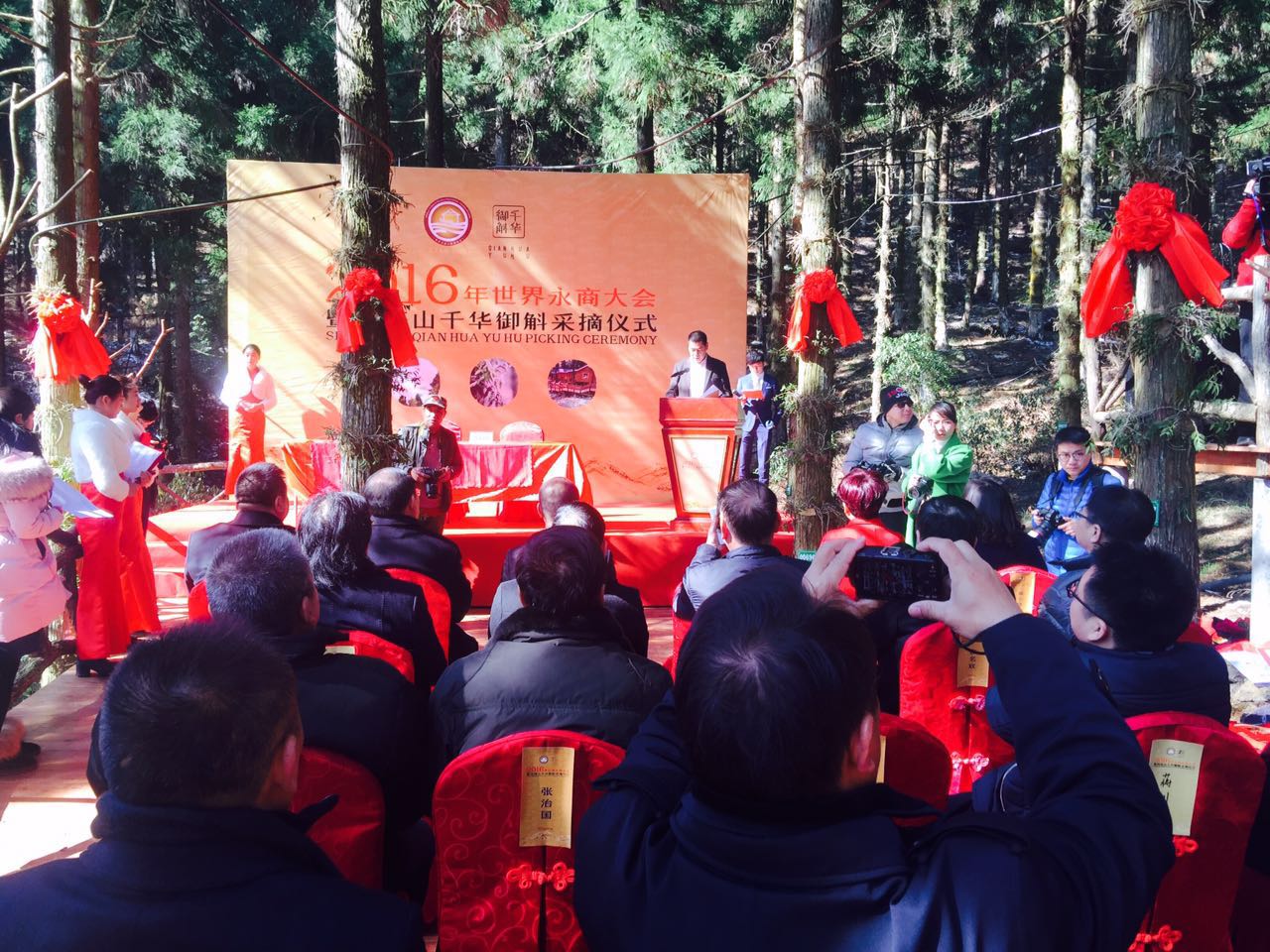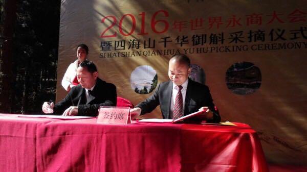 2月16日,大年初九,2016年世界永商大会暨四海山千华御斛采摘仪式举行。美国阿波罗生物科技控股集团股份有限公司董事长李敏镇,周大生珠宝股份有限公司总经理周小珍,河北省浙江商会会长、石家庄温州商会会长黄建厅等纷纷和浙江四海山生物科技有限公司签订战略、研发、海外市场、上市等合作,为铁皮石斛的发展注入了更强大的能量。