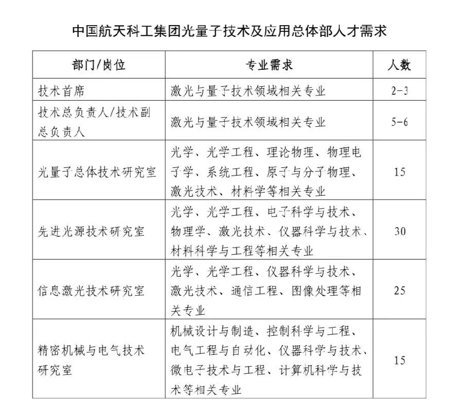 一般应具有博士研究生学历,具备激光与量子领域5年及以上工作经历,并至少满足以下任意一项条件: