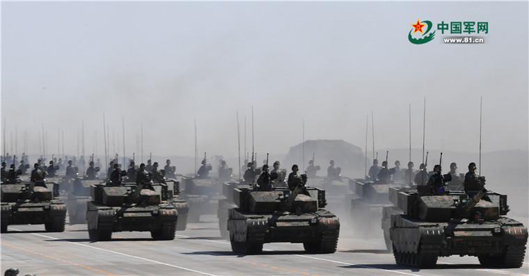 7月30日,庆祝中国人民解放军建军90周年阅兵在位于内蒙古的朱日和训练基地举行。这是坦克方队99A。