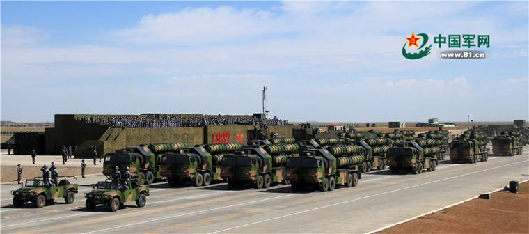 2017年7月30日,庆祝中国人民解放军建军90周年阅兵在位于内蒙古的朱日和训练基地举行。图为地空导弹方队红旗-9B。